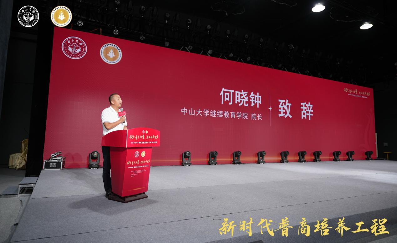 何晓钟在开班式上致辞,他认为此次培训班既是百年学府赋能普宁青年企业家成长的盛事,更是校地协同育人的生动实践,他希望学员以空杯心态求知、开放姿态交流、家国情怀担当,携手为民营经济高质量发展贡献“中大智慧”与“普商力量”。