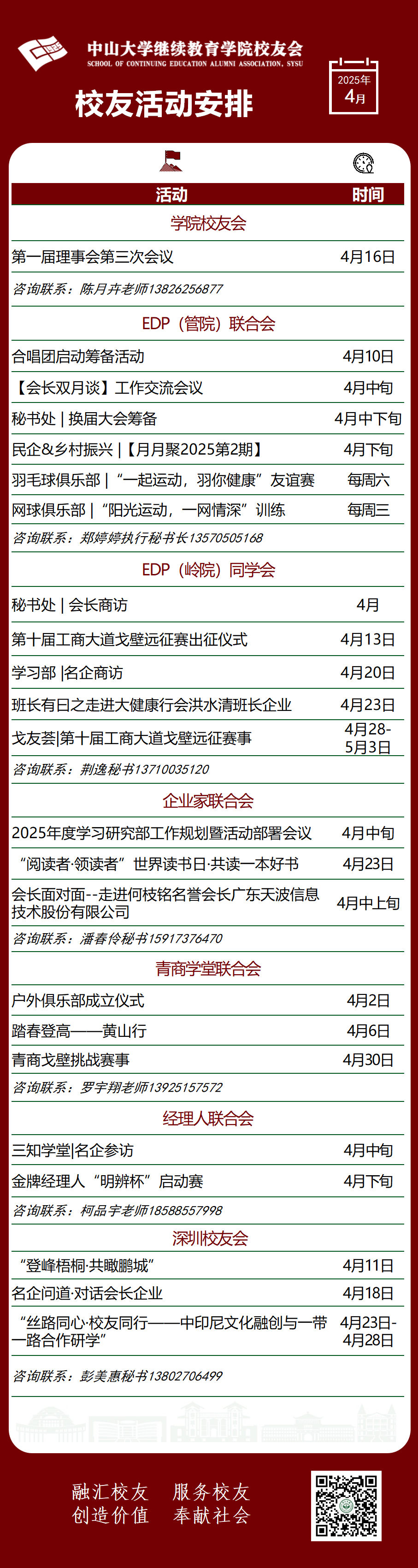 春风和煦,生机盎然。2025年1-3月,乐竞官方网站校友会及各校友分组织积极举办多场精彩纷呈的活动。链接校友,创新价值,打造高质量校友交流平台,欢迎校友们关注支持,一起向未来!